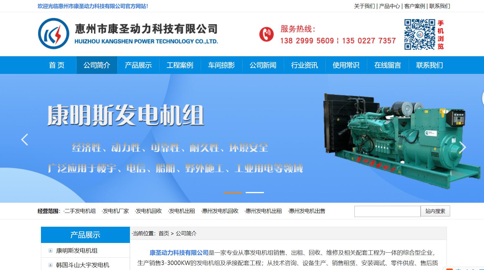 康圣动力科技有限公司是一家专业从事发电机组销售、出租、回收、维修及相关配套工程为一体的综合型企业,生产销售3-3000KW的发电机组及承接配套工程;从技术咨询、设备生产、销售租赁、安装调试、零件供应、售后质保、维修培训等一条龙服务。