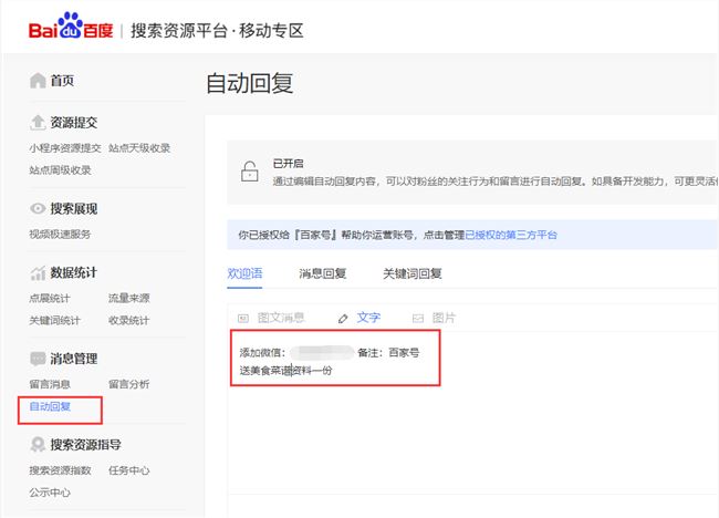 熊掌号的后台有个自动回复的功能,把你需要引流的东西写进去即可,只要粉丝一关注你,那么他就会自动回复这段话给粉丝,这样粉丝看到了,他有兴趣的话就会加你的联系方式。