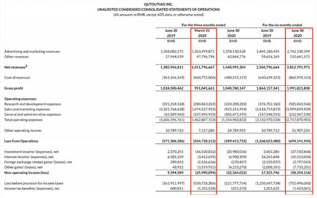 QuestMobile数据显示,在今年一季度暴跌19.9%后,二季度伴随疫情逐渐恢复,市场规模同比增长18.7%,趣头条营收14. 4 亿元,同比微增4%,跑输大盘。