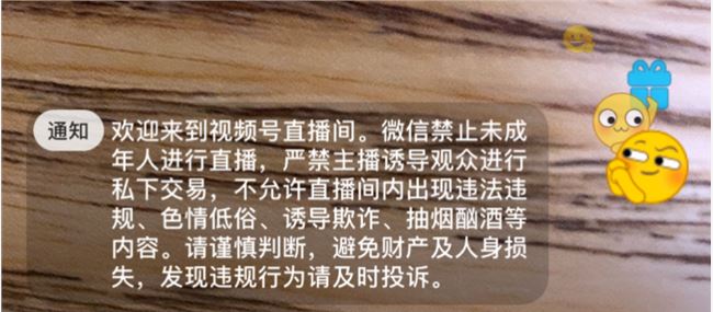 在主播端,主播点击在线观众后可以看到观众的 ID 和头像,主播也可以对用户进行禁止评论,移入视频号黑名单或投诉等操作。